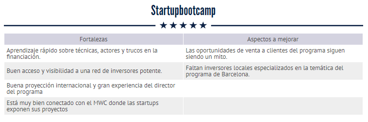 Startupbootcamp es una de las aceleradoras líderes a nivel global con programas en funcionamiento en las principales ciudades como Londres, Amsterdam, Berlín, Barcelona, Nueva York, Mumbai, Chengdu, Dubai o Singapur con cada una de ellas especializadas en una industria ó vertical específico. Cada programa selecciona anualmente a nivel mundial las mejores startups para cada uno de los programas.