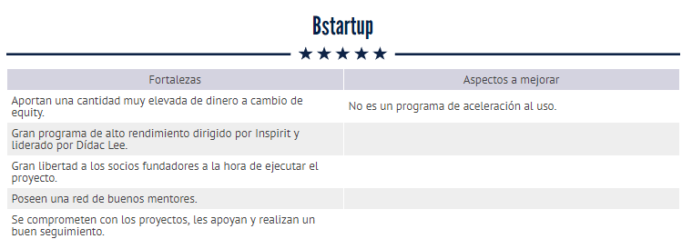 1. BStartup 10: donde invierten cada año en 10 empresas en fases iniciales a cambio de una participación en capital social.