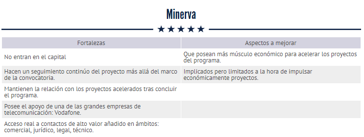 Minerva es un programa de emprendimiento, promovido por la Junta de Andalucía y Vodafone, para el impulso de proyectos empresariales del sector tecnológico en la región andaluza. El principal objetivo de Minerva es apoyar a emprendedores y ayudar a sus proyectos empresariales a crecer para que se conviertan en negocios estables.